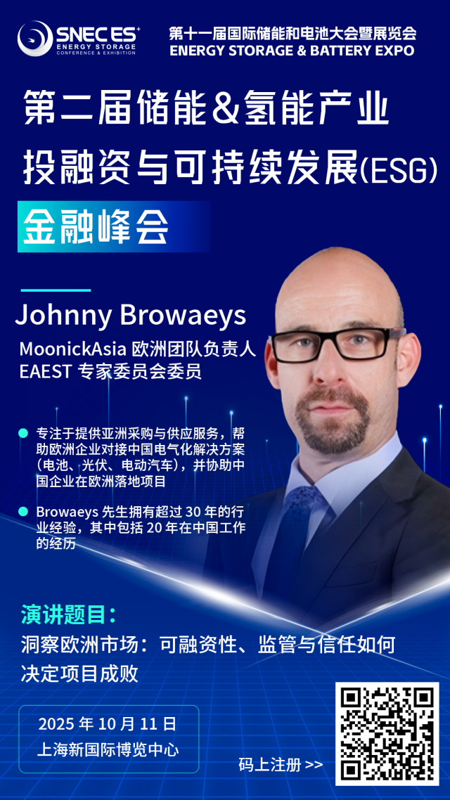 EAEST Expert Committee Member Johnny Browaeys Speaks at SNEC 2nd Energy Storage & Hydrogen Investment, Finance and ESG Summit